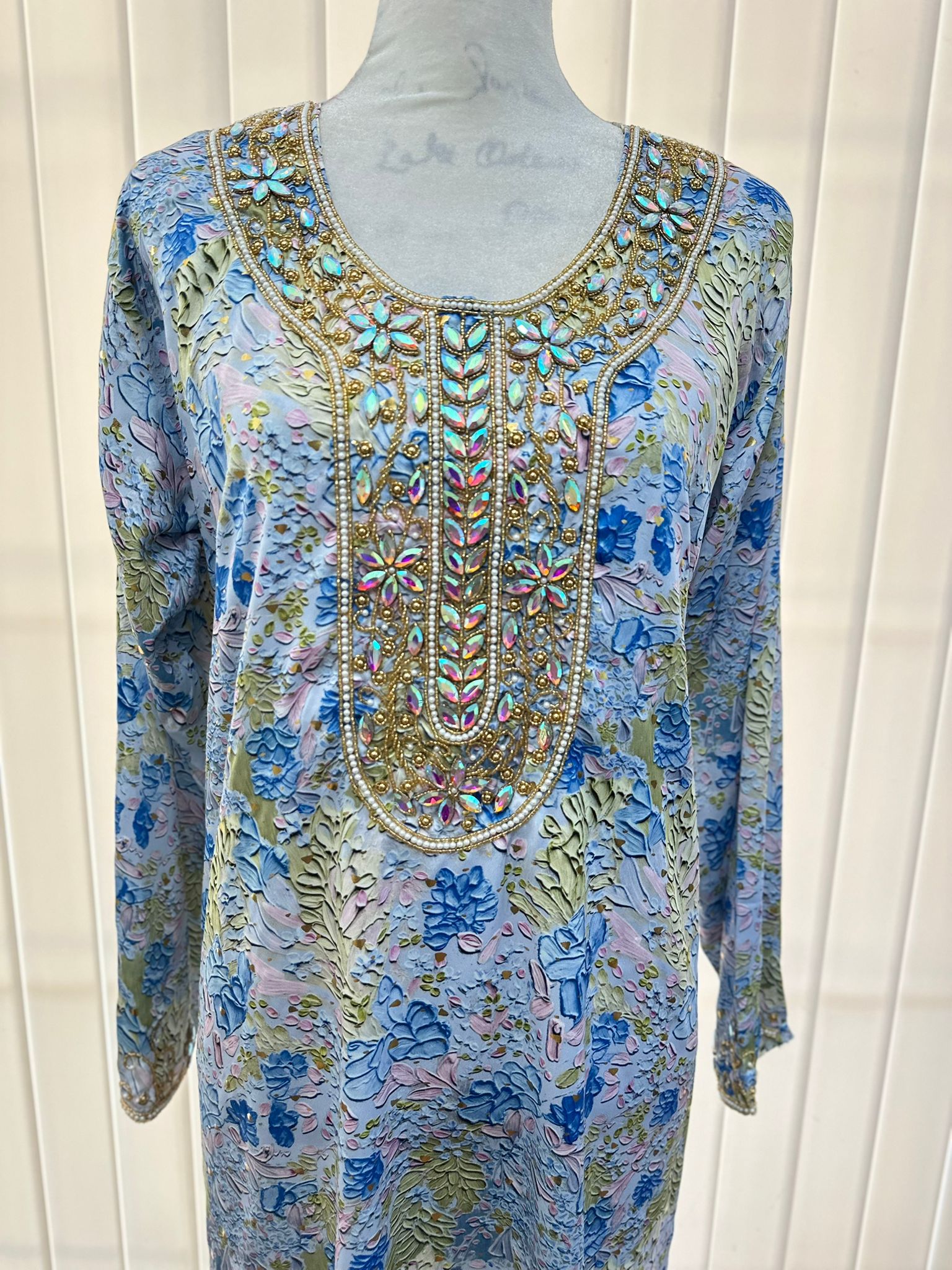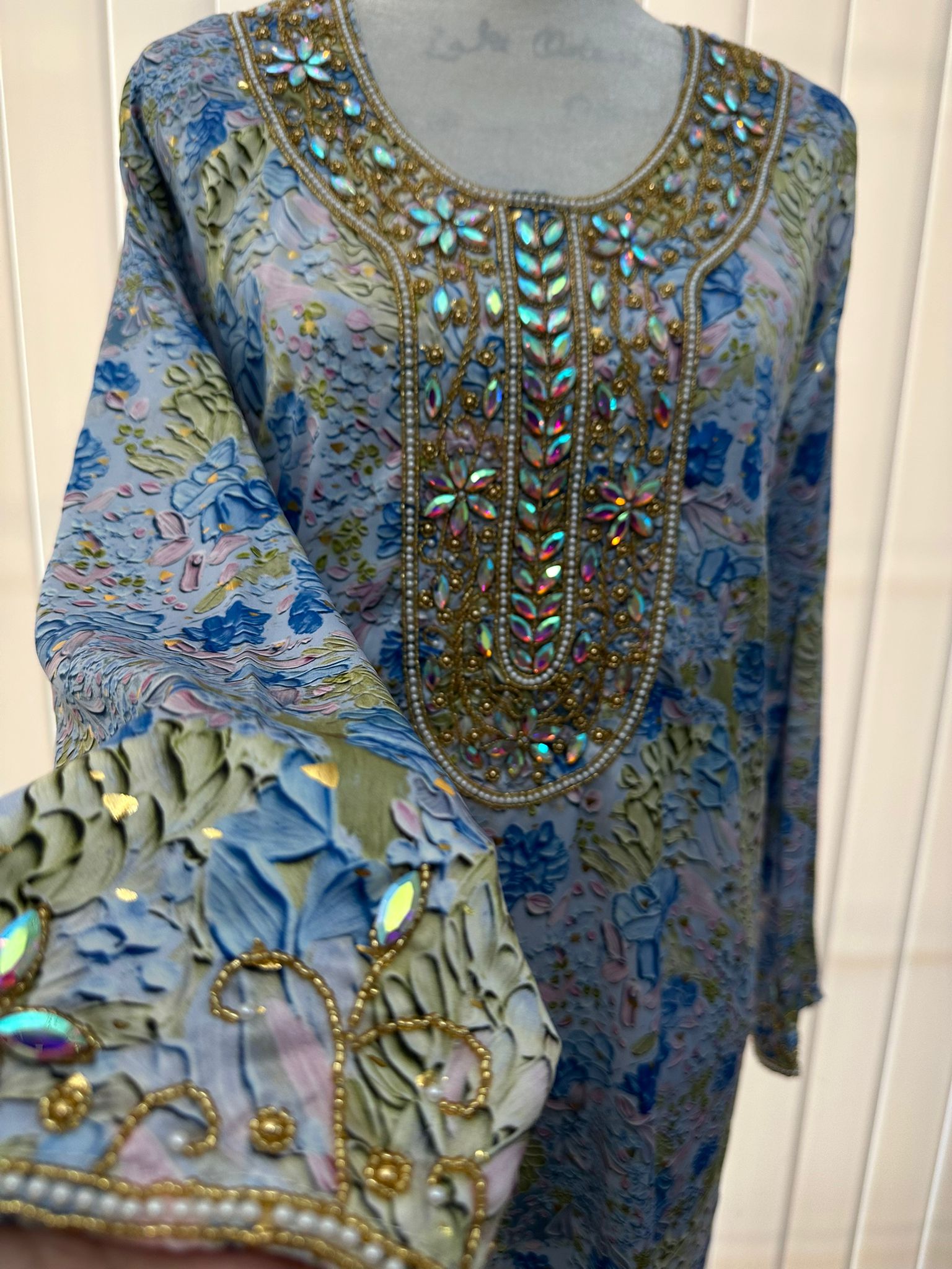 Experience timeless elegance with the Israa Mukhawar — a chic embroidered piece that blends softness with exquisite craftsmanship. Perfect for those who appreciate understated luxury and graceful style.