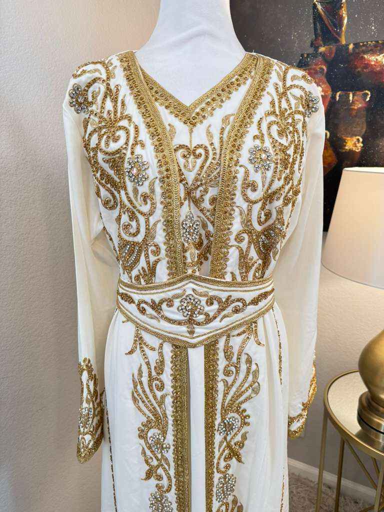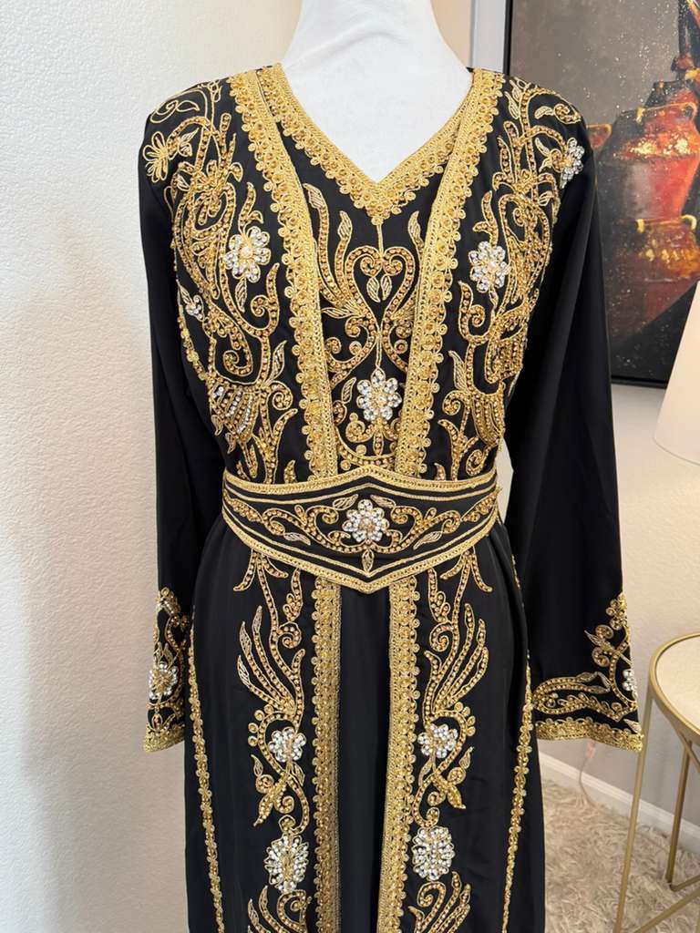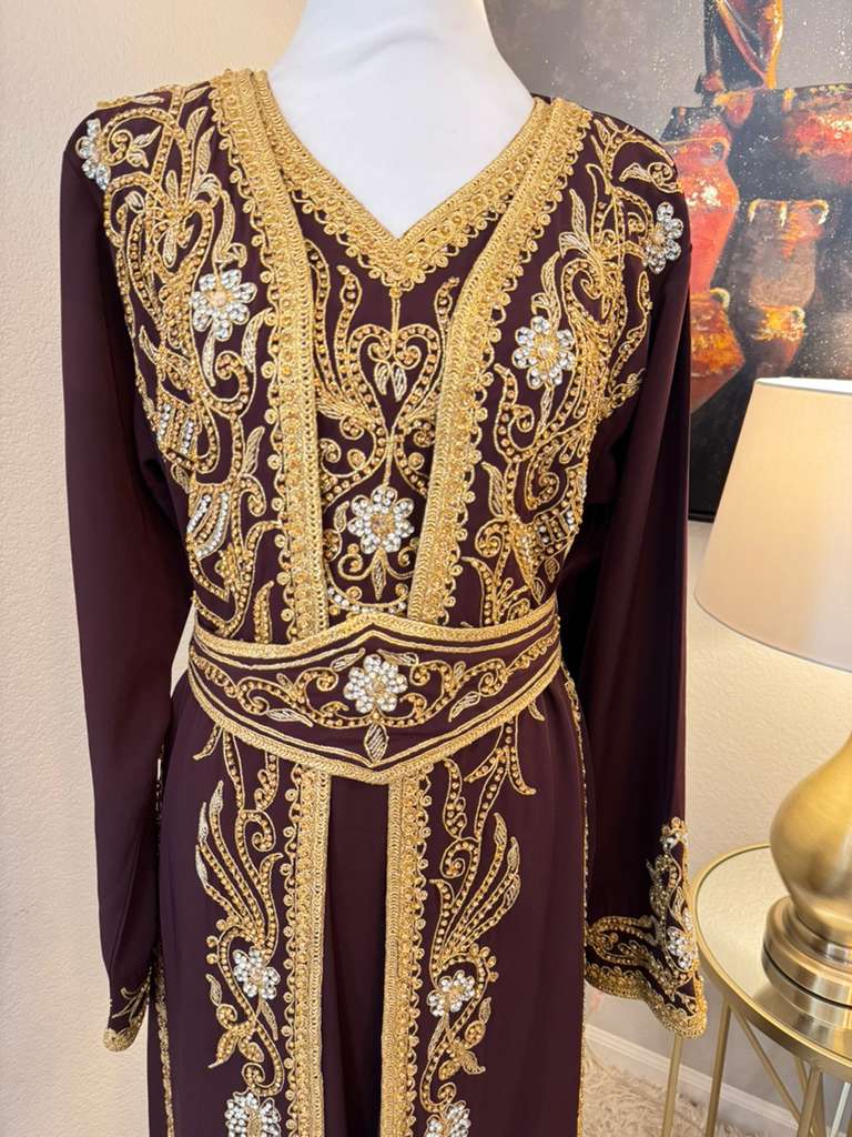 Intricate gold embroidery that reflects traditional Middle Eastern craftsmanship