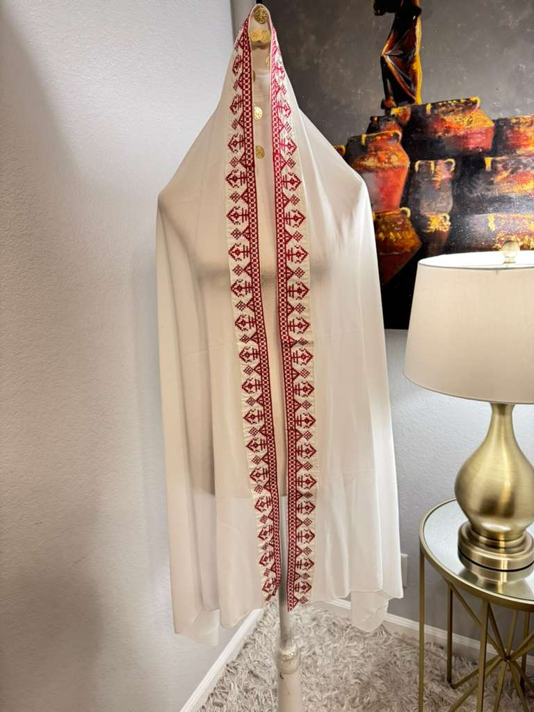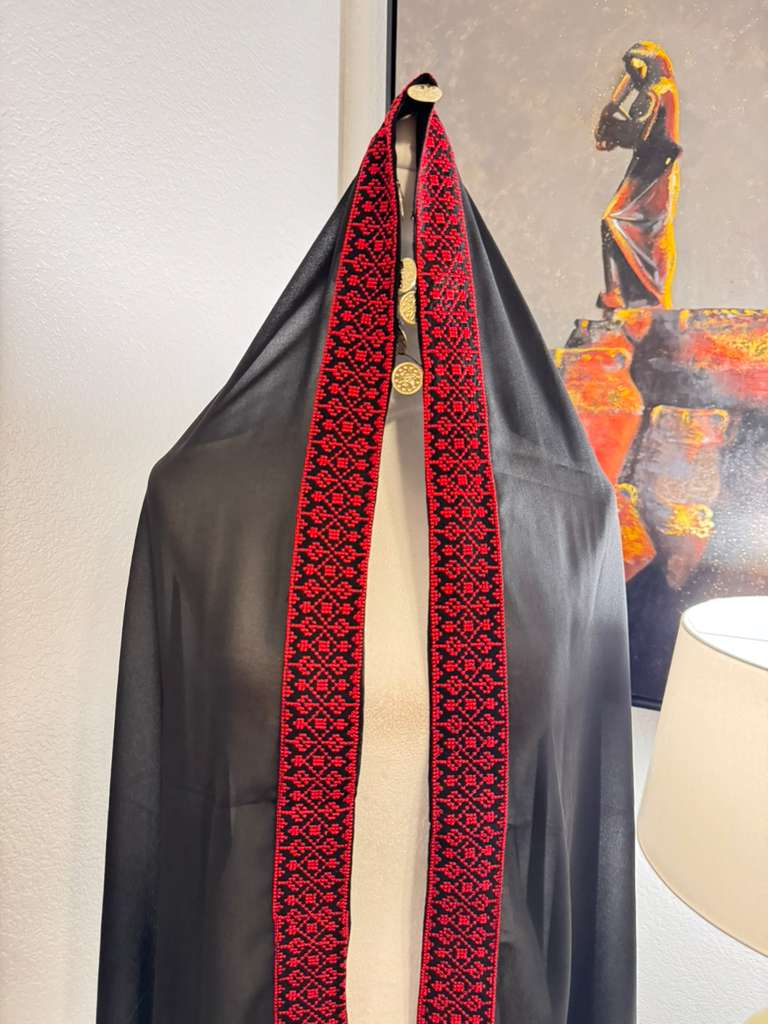 Adorned with patterned gold coins, this modest shall will add a touch of luxury and sophistication to any outfit. Perfect for any occasion, this piece will surely make a statement wherever you go.