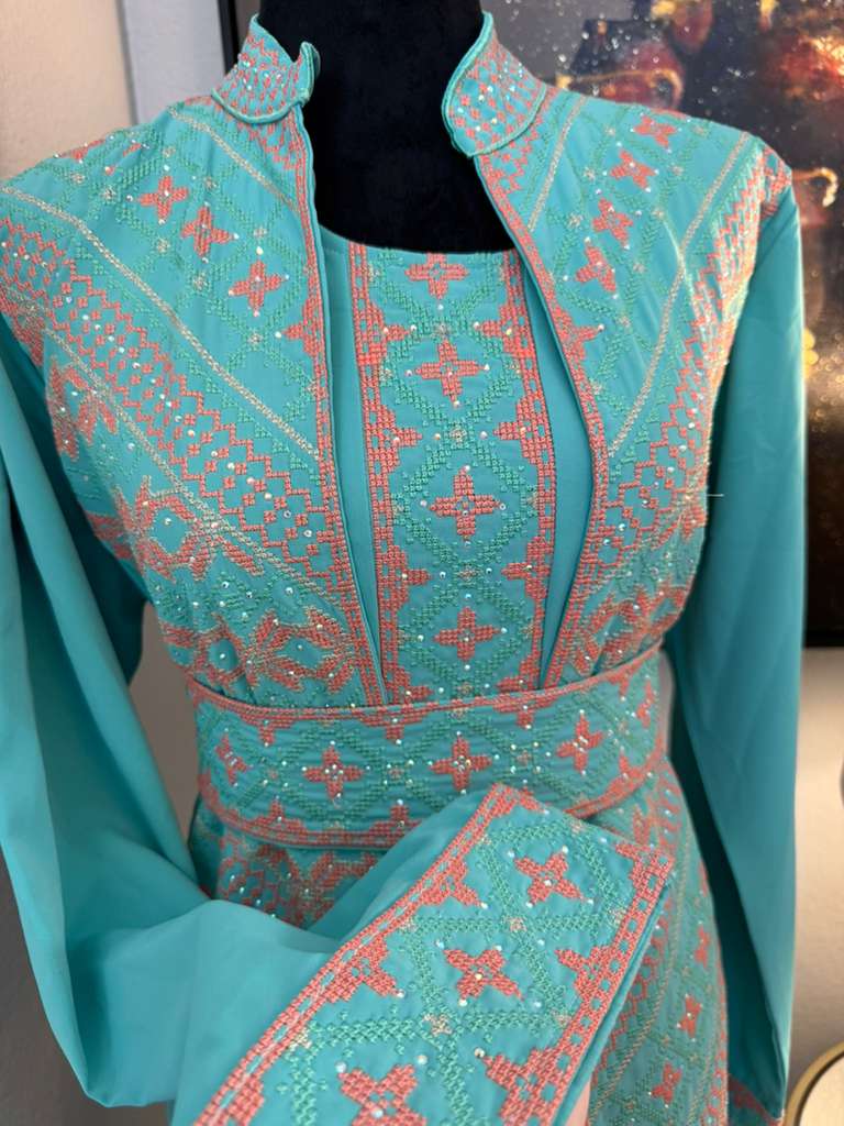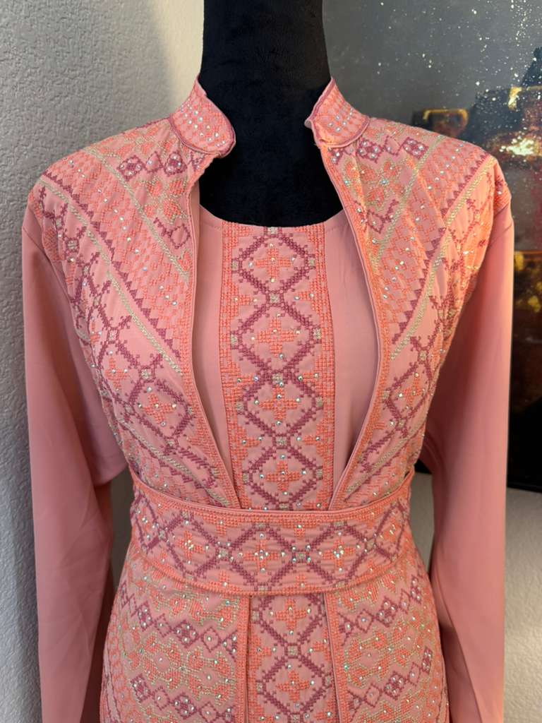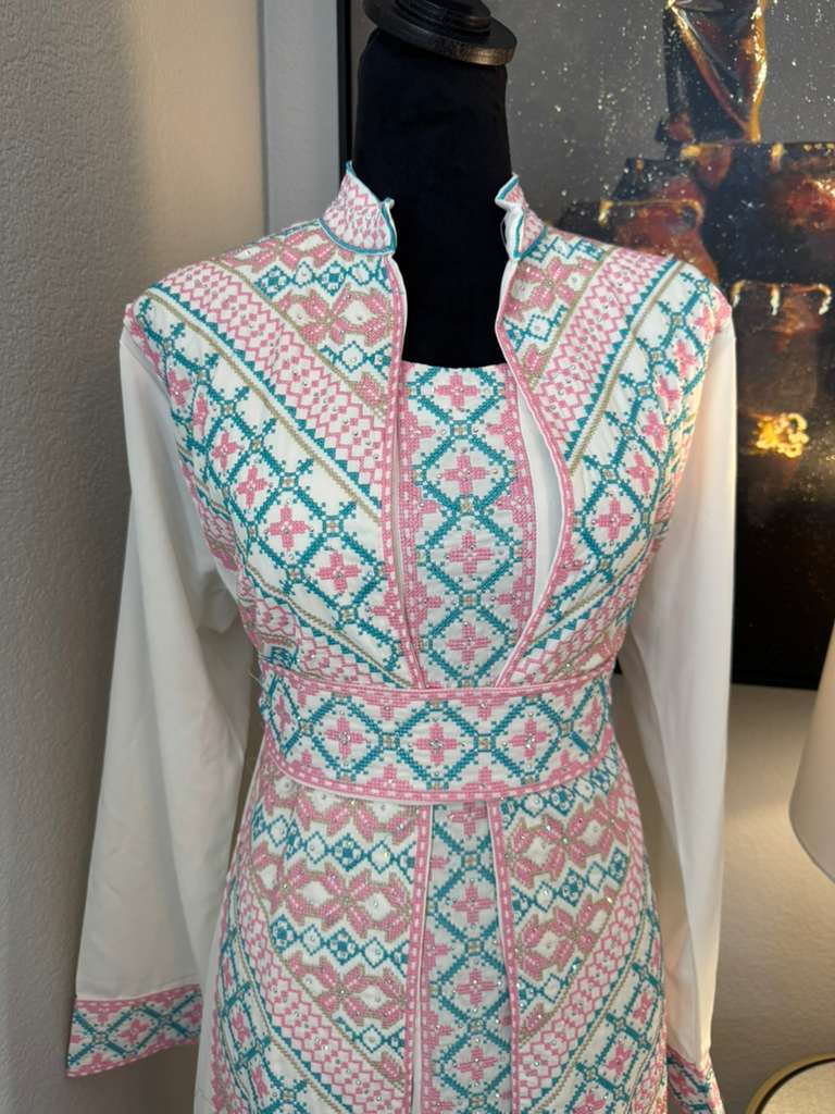 This exquisite set features delicate embroidery, creating a soft and elegant touch. The sophisticated design is perfect for the fashion-forward individual, with a long silhouette that exudes elegance.